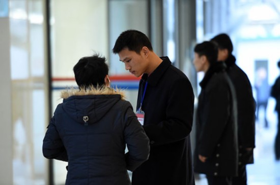 工作人员接收群众递交的表格,并解答群众咨询问题