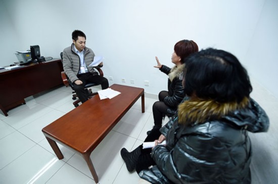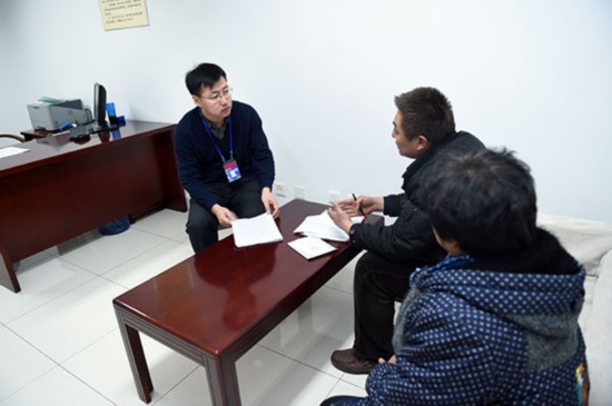 工作人员认真查看来访群众反映材料,倾听群众诉求