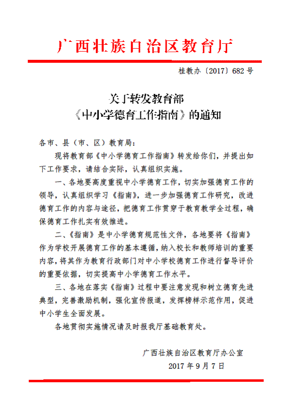 关于转发教育部《中小学德育工作指南》的通知