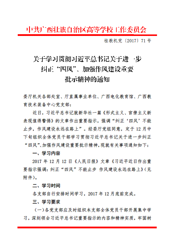 桂教机党〔2017〕71 号 学习习近平总书记关于进一步纠正四风、加强作风建设作出的批示.pdf