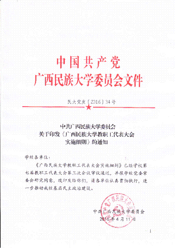 民大党发〔2016〕34号 关于印发《广西民族大学教职工代表大会实施细则》的通知.pdf